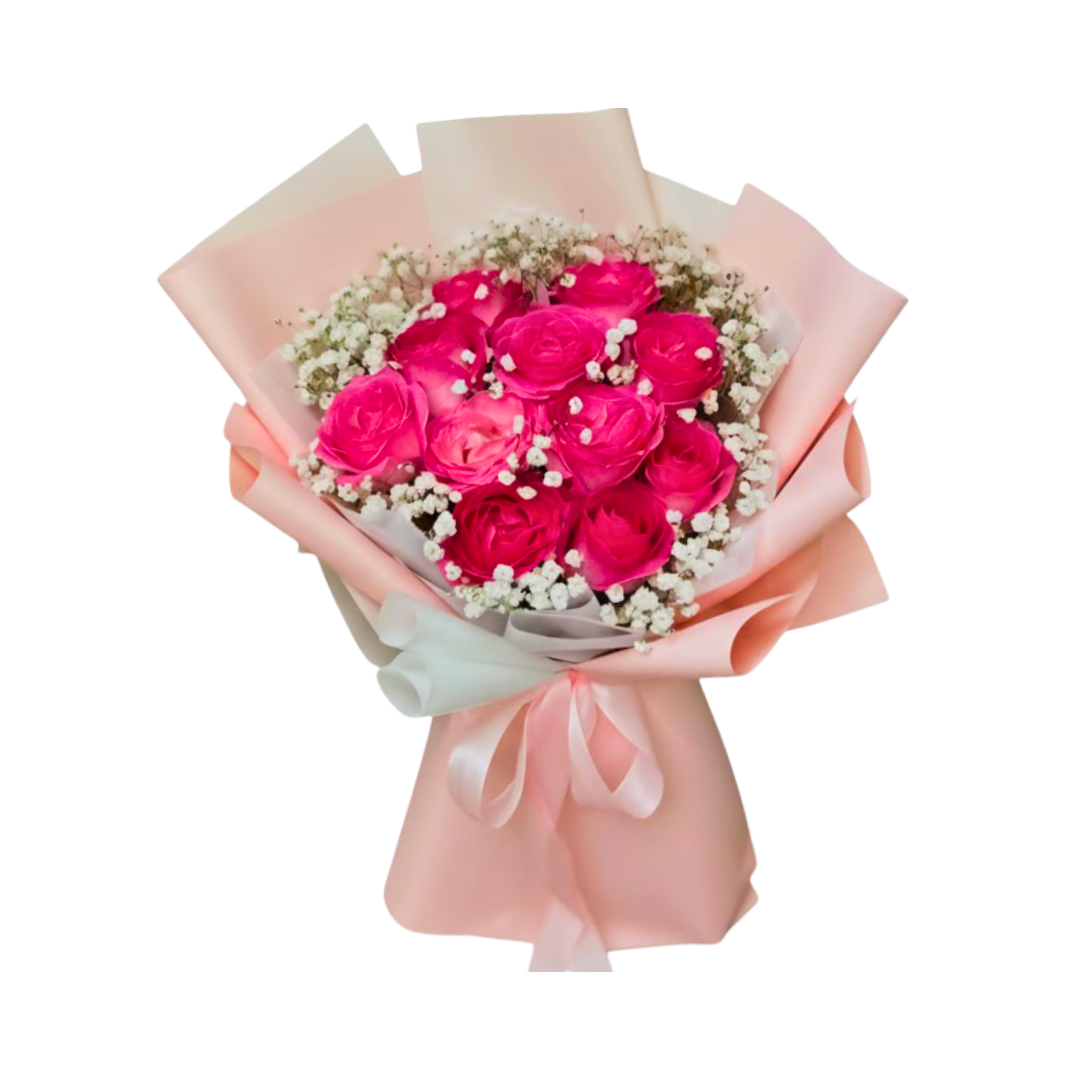 Hand Bouquet Gaelazy adalah perayaan yang semarak dan penuh warna, sebuah buket tangan yang dirancang untuk menyampaikan kegembiraan, kekaguman, dan apresiasi yang bersemangat dengan sentuhan yang elegan dan chic. Buket yang memukau ini menampilkan harmoni yang indah dari beragam jenis dan warna bunga, menjadikannya pilihan hadiah yang sempurna untuk setiap acara yang membutuhkan keceriaan, seperti ulang tahun, ucapan selamat, atau perayaan pencapaian. Inti dari Hand Bouquet Gaelazy adalah koleksi bunga yang beragam (mix flowers) yang kaya warna, seringkali memadukan Mawar Merah Muda, Mawar Krem/Putih Gading, Karnasi (Carnation) Pink dan Peach, serta Krisan mini dalam nuansa ungu atau fuchsia. Komposisi yang beragam ini menciptakan palet yang dinamis dan berlapis, mencerminkan energi dan semangat yang hidup.